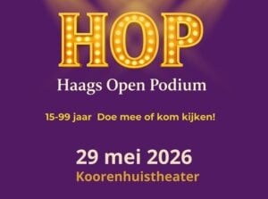 Op vrijdagen 12 december 2025, 13 februari 2026, 17 april 2026 én 29 mei 2026 in het Koorenhuistheater kun je meedoen met het Haags Open Podium om je talent(en) in de kunsten te laten zien: